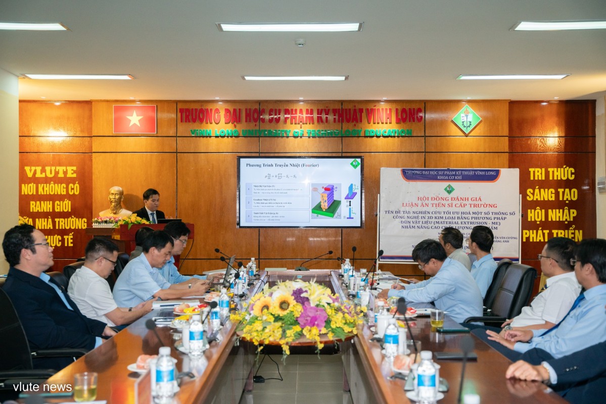 Chiều 10/4/2026, Trường Đại học Sư phạm kỹ thuật Vĩnh Long (VLUTE) tổ chức Hội đồng đánh giá luận án Tiến sĩ cấp trường cho nghiên cứu sinh (NCS) Cao Đăng Long, ngành Kỹ thuật cơ khí. Đây là NCS khóa đầu tiên của khoa cơ khí
