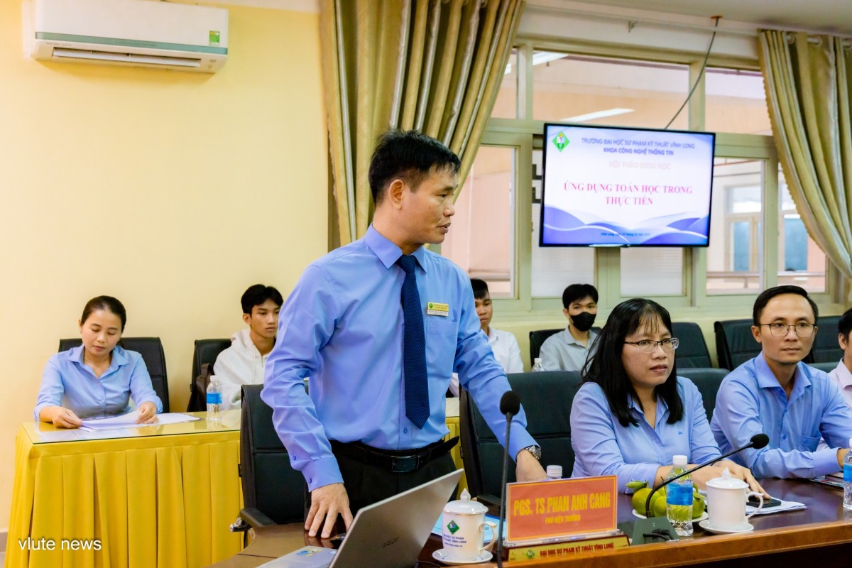 Tại hội thảo PGS.TS Phan Anh Cang – Phó Hiệu trưởng, phát biểu chào mừng, gửi lời cảm ơn đến sự tham dự của GS.TS Lê Văn Thuyết đã đến chia sẻ, định hướng và truyền cảm hứng nghiên cứu, cho đội ngũ giảng viên và sinh viên. PGS.TS Phan Anh Cang nhấn mạnh: Hiện nay Toán học không chỉ là lĩnh vực nghiên cứu thuần túy, mà còn là công cụ rất quan trọng hỗ trợ mạnh mẽ cho sự phát triển của các ngành khoa học và công nghệ mới trong xu hướng phát triển khoa học công nghệ, chuyển đổi số hiện nay. Thầy cũng bày tỏ mong muốn hội thảo sẽ là diễn đàn học thuật hữu ích, giúp giảng viên và sinh viên giao lưu, trao đổi kinh nghiệm và mở rộng hướng nghiên cứu ứng dụng Toán học vào đời sống.