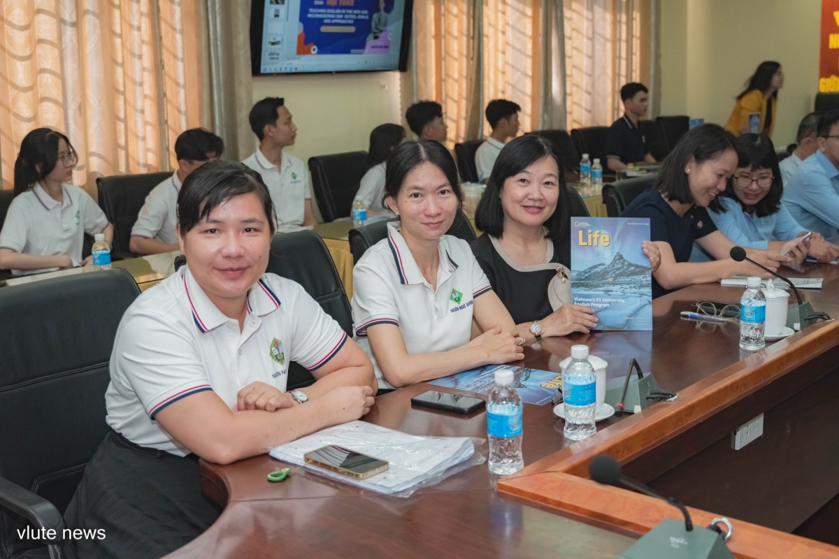 Tham dự có ông Hồ Thanh Nam-Account Manager, Nation Geographic Learning và ông Nguyễn Hải Quân- Nhà sáng lập đồng thời là Cố vấn học thuật và Quan hệ Quốc tế tại Trung tâm Ngoại ngữ Gia Việt và Tổ chức Tư vấn Du học VISA. Về phía VLUTE có đại diện Phòng QLKH-TV-HTQT cùng lãnh đạo và quý thầy cô, sinh viên ngành Ngôn ngữ Anh.