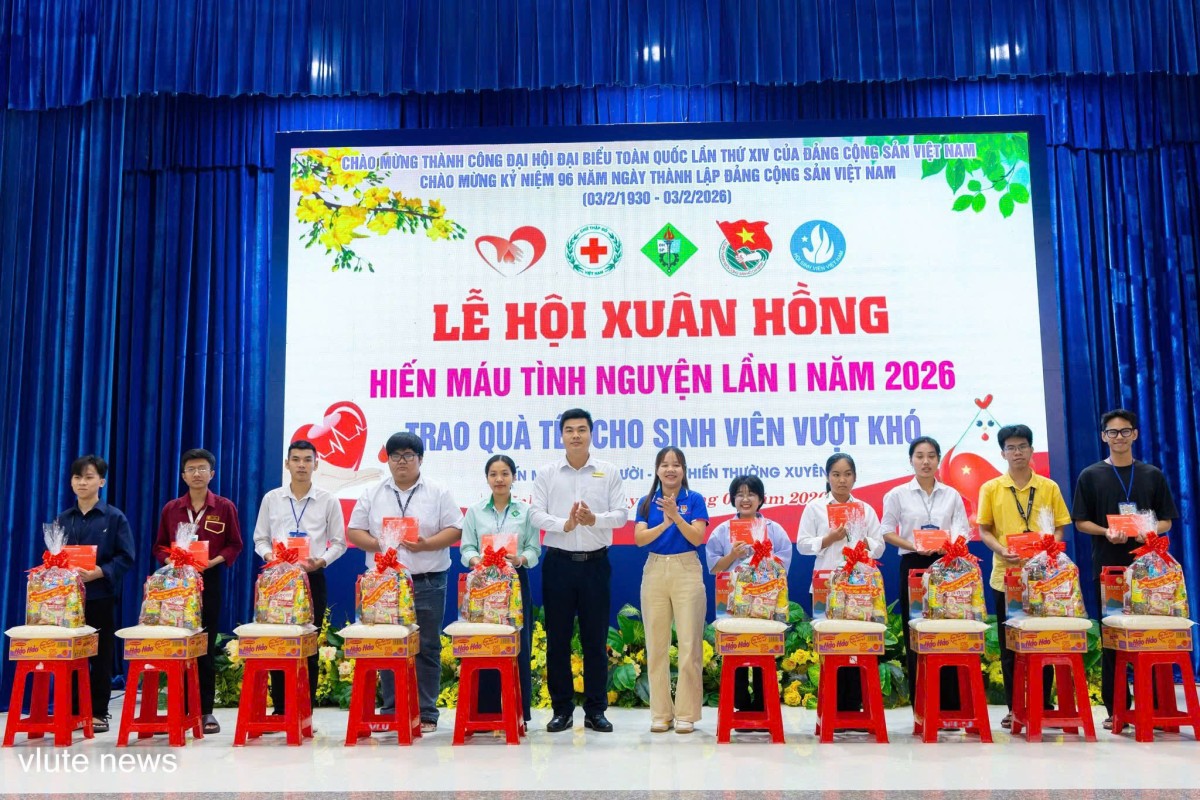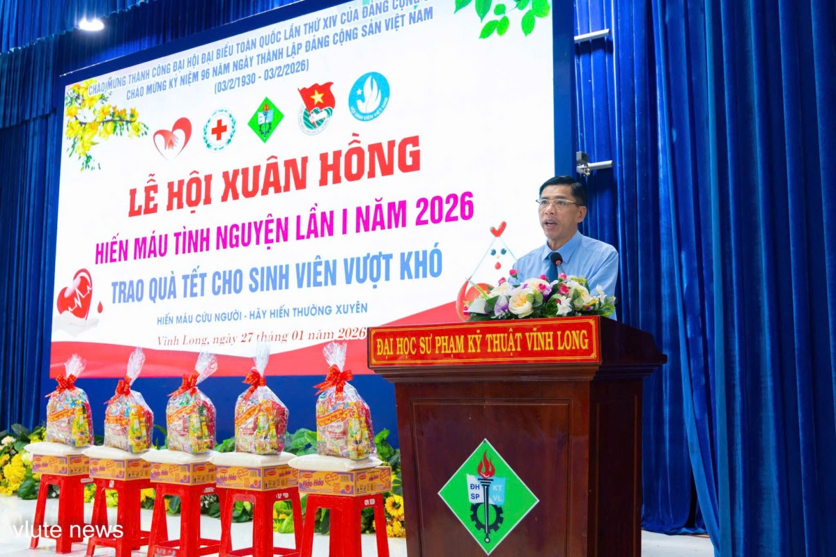 Trong không khí phấn khởi chuẩn bị chào đón Xuân Bính Ngọc 2026, sáng 27/1/2025, Trường Đại học Sư phạm Kỹ thuật Vĩnh Long (VLUTE) long trọng tổ chức Lễ hội Xuân Hồng năm 2026, sự kiện chào mừng thành công Đại hội đại biểu toàn quốc lần thứ XIV của Đảng, nhiệm kỳ 2025–2030 và kỷ niệm 96 năm Ngày thành lập Đảng Cộng sản Việt Nam. Chương trình được tổ chức nhằm trao quà Tết hỗ trợ sinh viên có hoàn cảnh khó khăn và vận động hiến máu tình nguyện, lan tỏa tinh thần nhân ái, sẻ chia vì cộng đồng.