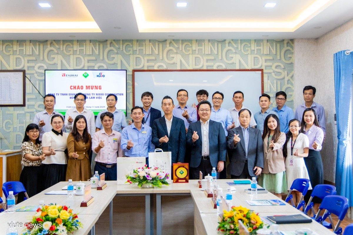 Chiều 11/11/2025, Trường Đại học Sư phạm Kỹ thuật Vĩnh Long (VLUTE) đã có buổi làm việc với Công ty TNHH Esuhai và Công ty Nisso Corporation.