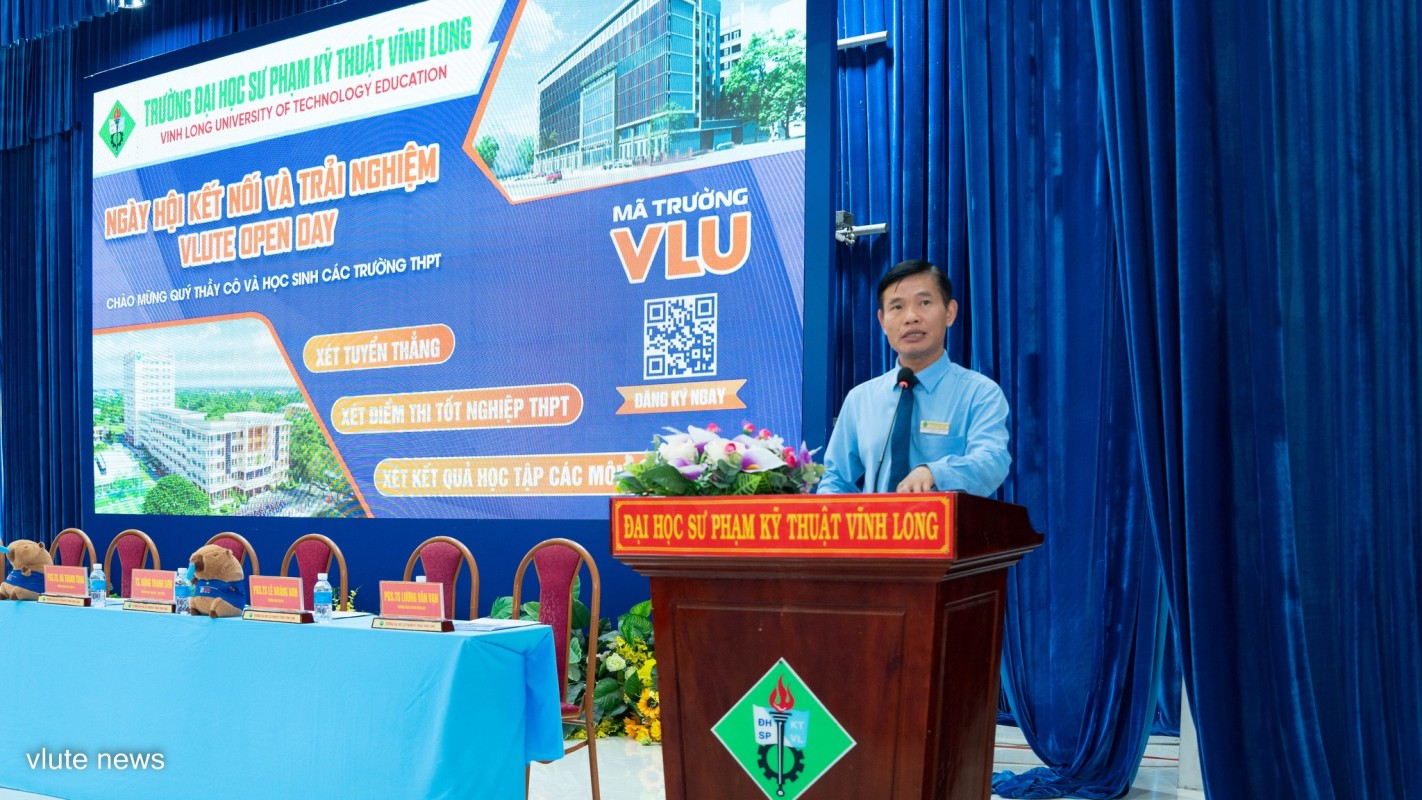 Phát biểu tại chương trình,, PGS.TS Phan Anh Cang đã gửi lời chào mừng, tri ân đến quý thầy cô đến tham dự ngày hội tuyển sinh, đồng thời khái quát chặng đường phát triển của nhà trường. Lãnh đạo nhà trường nhấn mạnh định hướng của VLUTE là đào tạo nguồn nhân lực chất lượng cao, gắn với thực tiễn.